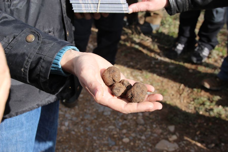 While the conference hall presentations were engaging, the field trip on the Thursday was much anticipated. There’s no doubt we’re in rural Spain! The one day field trip on Thursday took us south from Teruel to Sarrion, the home of a number of companies operating tree nurseries and a wonderful truffle processing plant – run by Manjares De La Tierra. But on the way, first a truffle hunt, with the local media all excited about the conference: